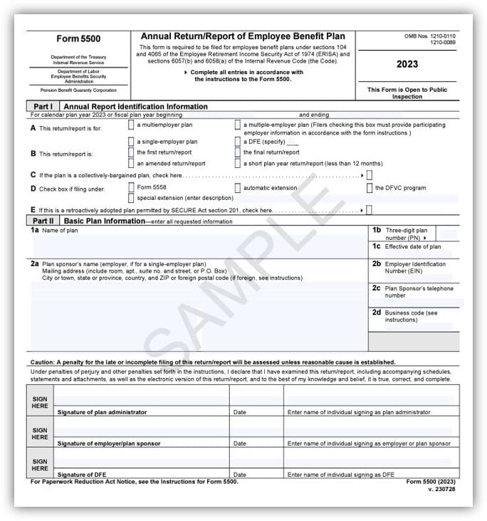 - Form 5500: Annually, you must file Form 5500 with the IRS, which reports the financial condition and operations of the employee benefit plan.